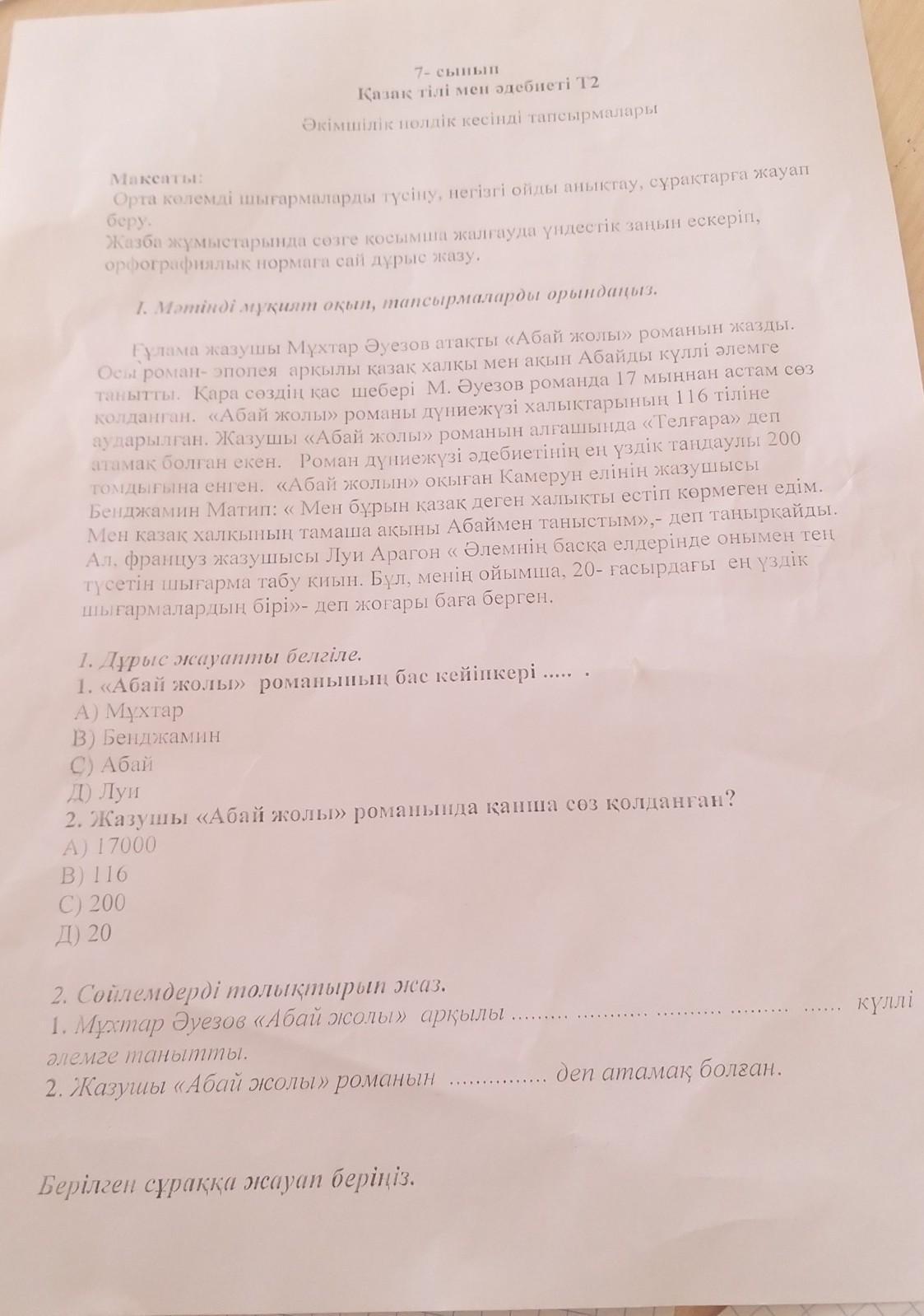 1. С) Абай