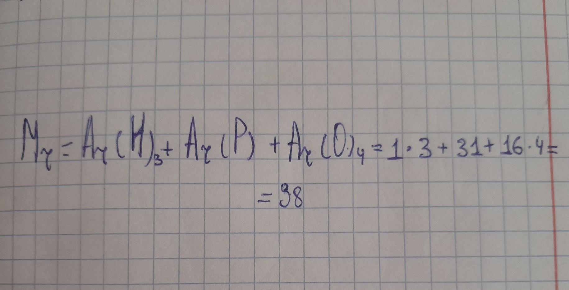 Mr=Ar(H)³+Ar(P)+Ar(P)+Ar(O)⁴=98