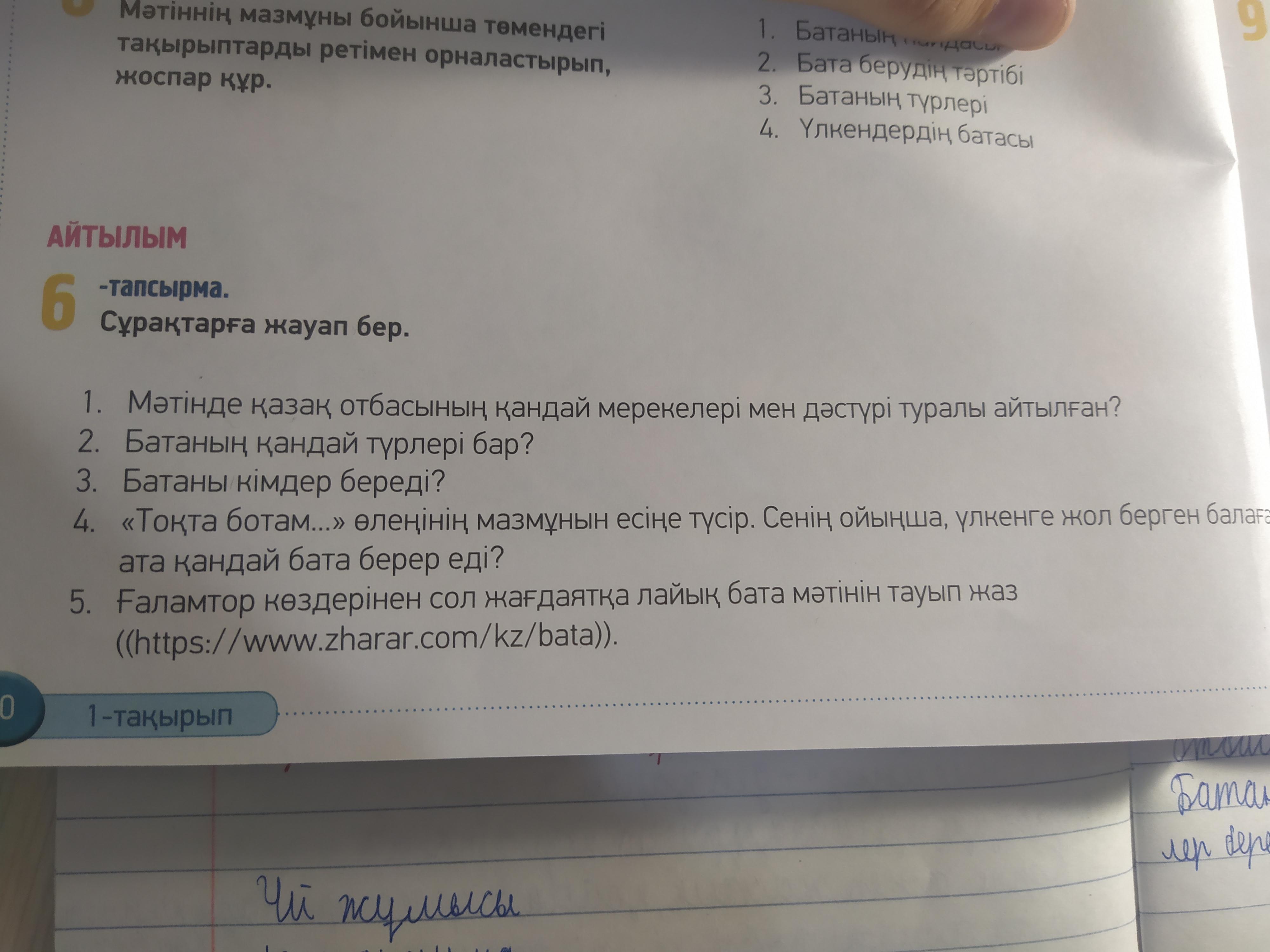 казахский, 6 задание нужно ответить на вопросы по тексту. все прикрепила жду ответа надеюсь будет быстро