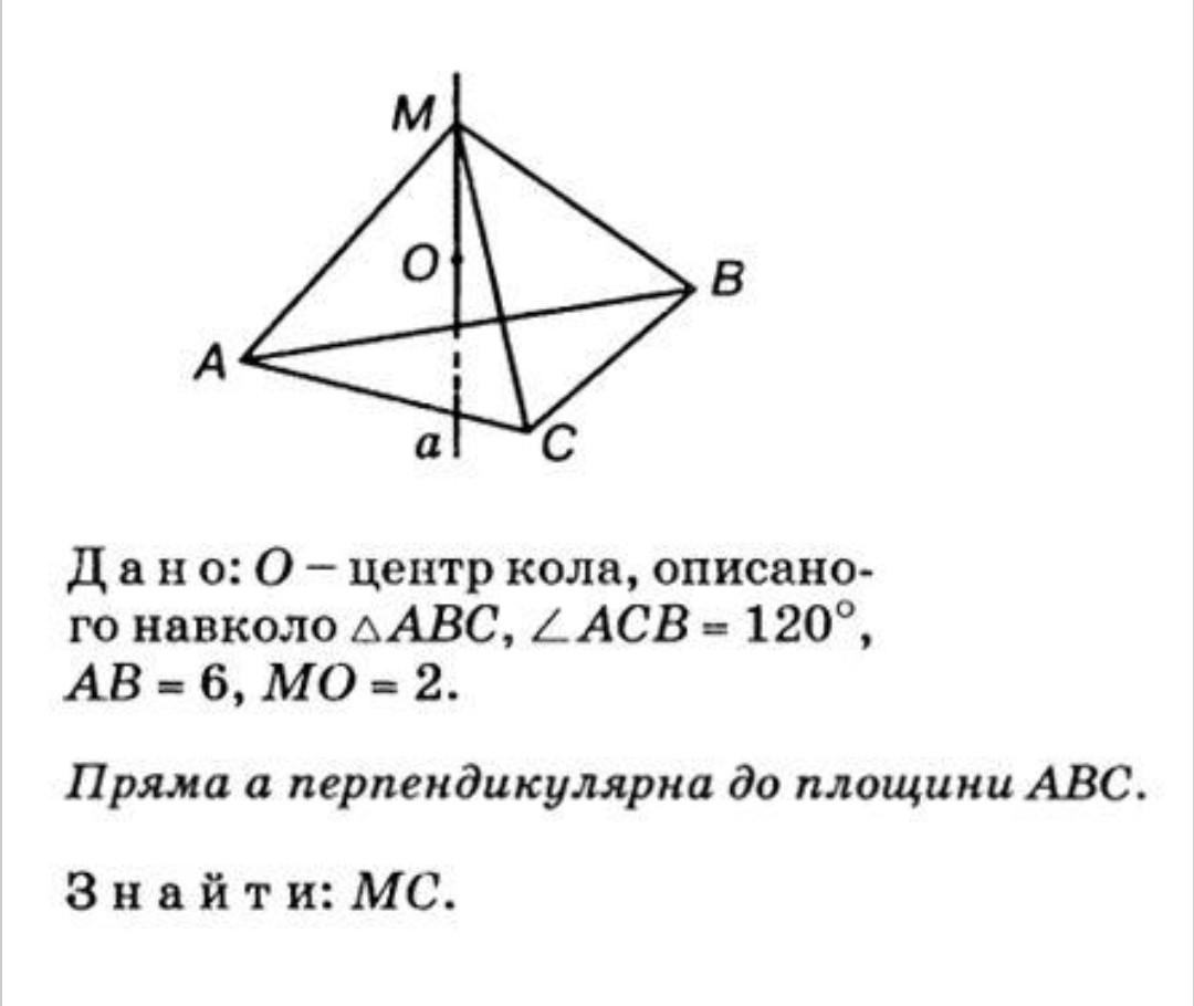 МС=√(МО²+ОС²)=√(2²+(2√3)²)=