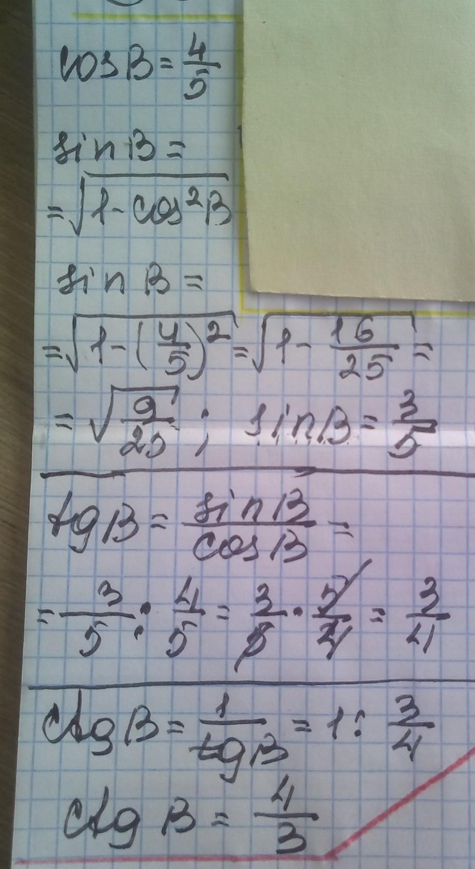 Знайти sinB;tgB; ctgB если cosB = 4/5