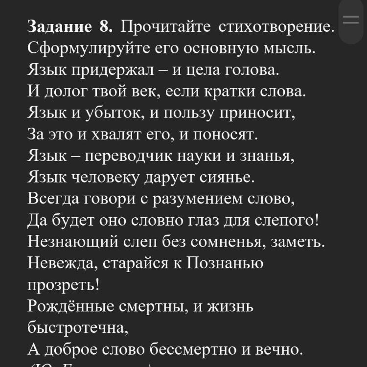 Моё мнение о основном мысле стихотворении :"Язык всемогущий"