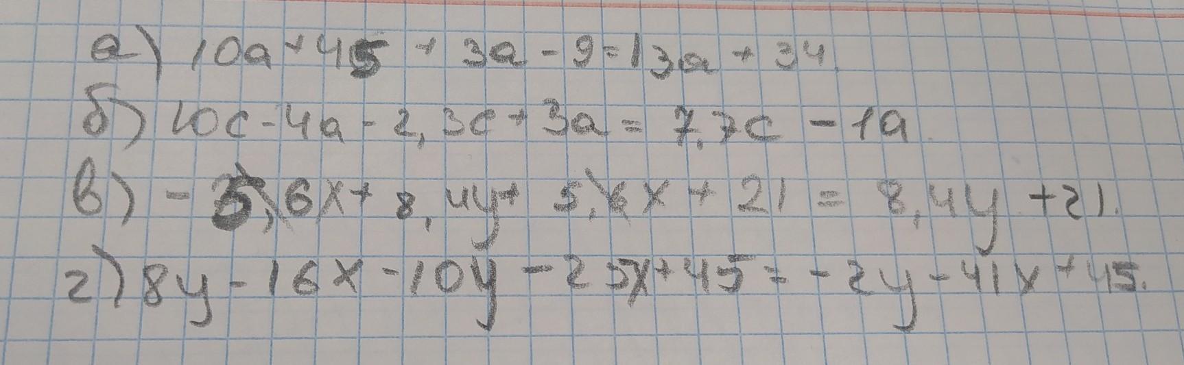 а) 5(2а + 7) + (3а - 9) = 10а + 35 + 3а - 9 = 13а + 26