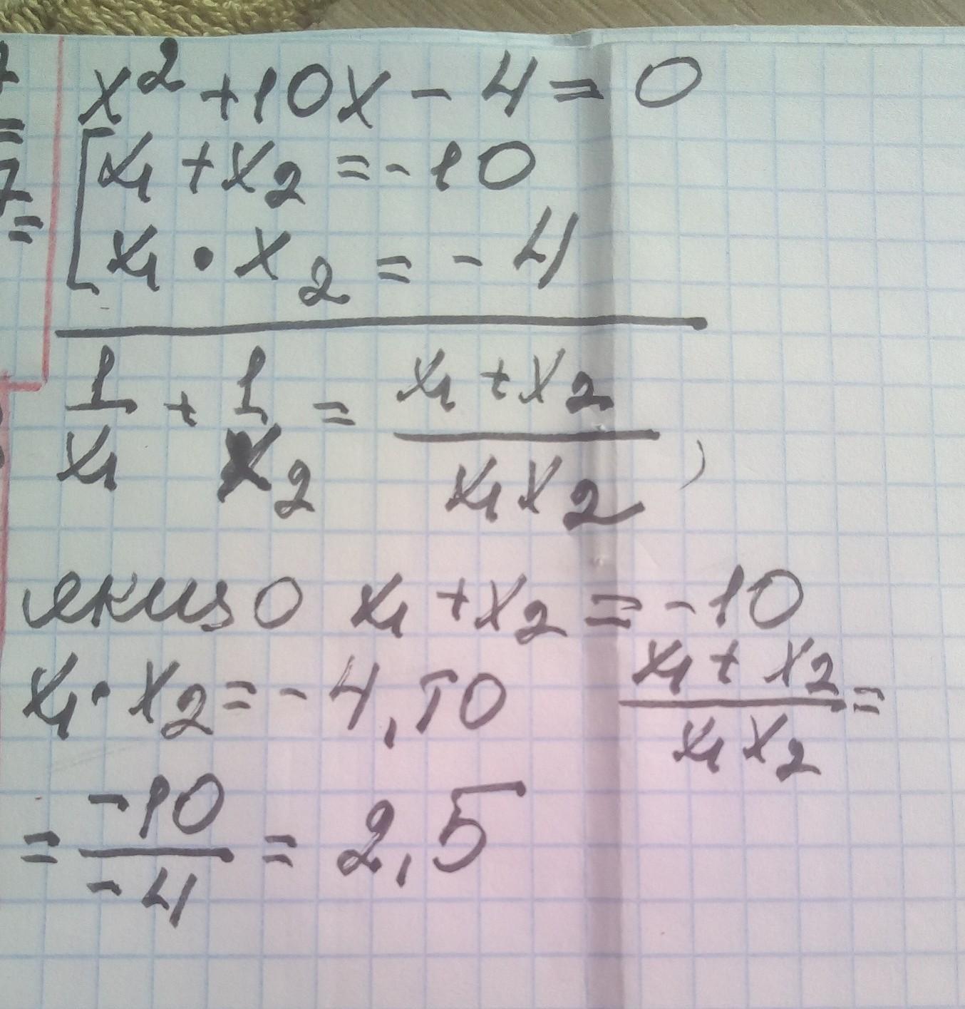 не розв'язуючи рівняння х²+10х - 4= 0, знайдіть значення виразу 1/х1+1/х2,де х1 і х2 - корені рівняння