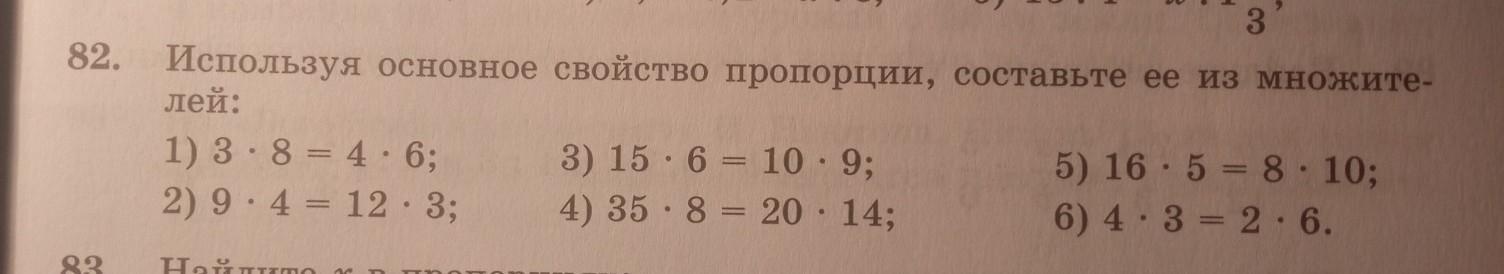 82. Используя основное свойство пропорции, составьте ее из множителей: