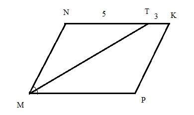 ∠NMT=∠PMT по условию, ∠PMT=∠NTM как накрест лежащие углы. Значит ∠NMT=∠NTM, => △MNT - равнобедренный и MN=NT=5 см.