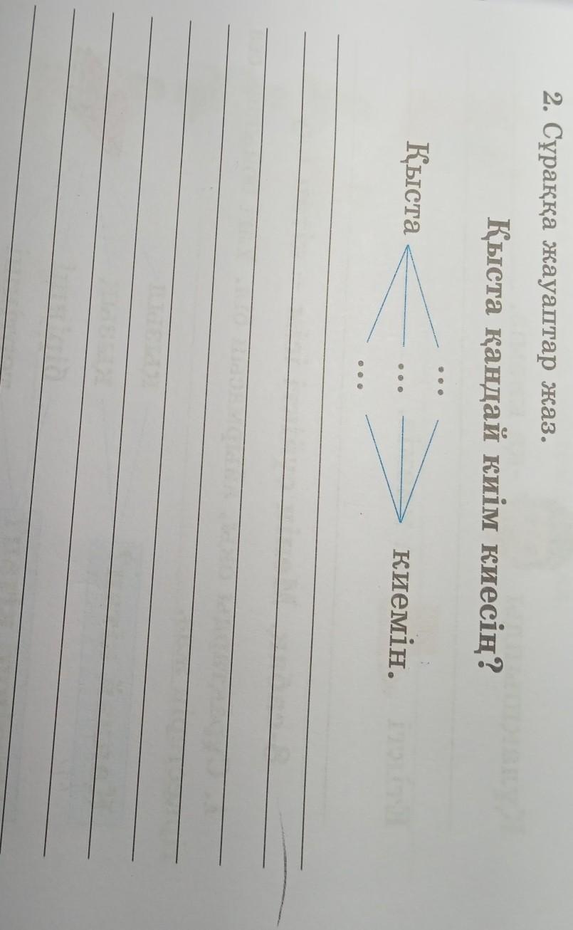 2. Сұраққа жауаптар жаз. Қыста қандай киім киесің? Қыста ... ……. киемін. Срочно помогите пожалуйста дам 50 б