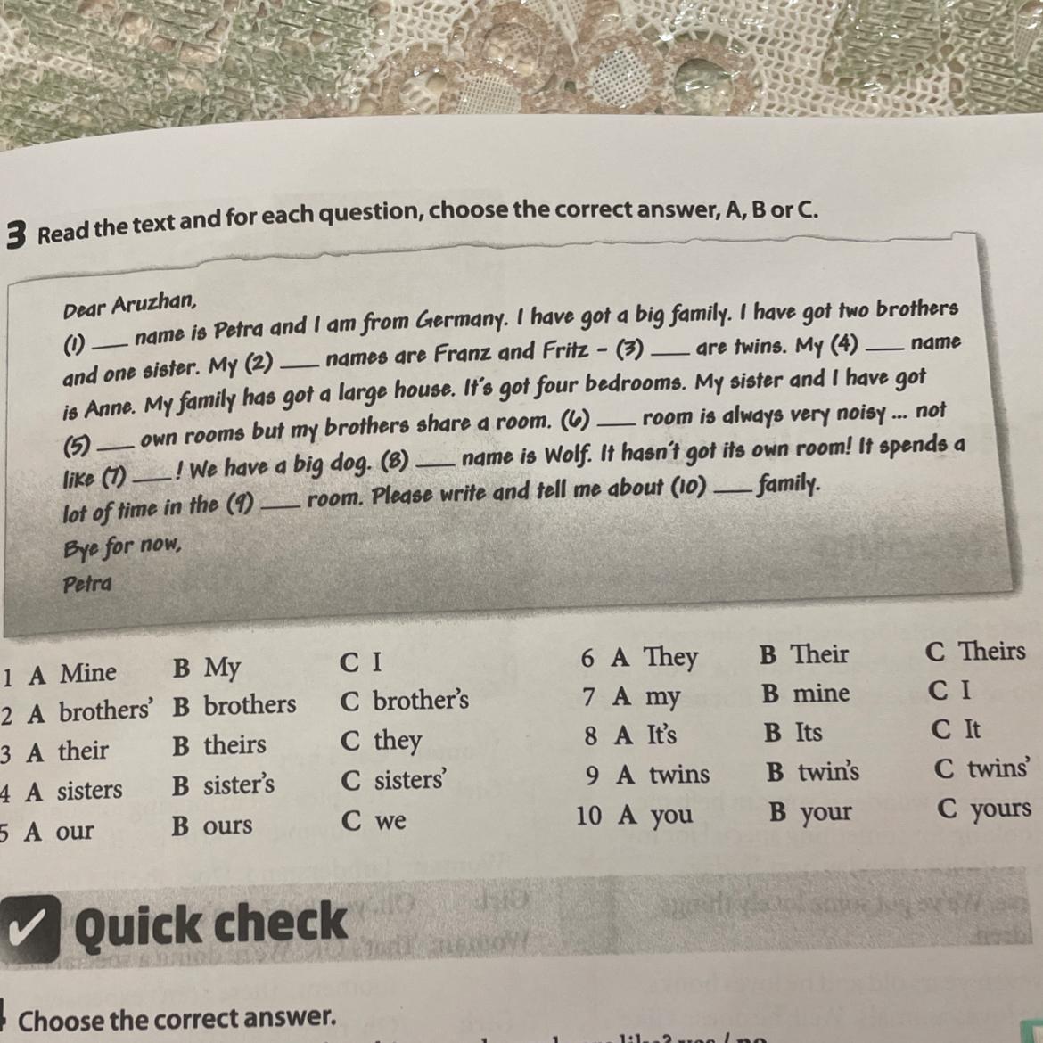 3 Read the text and for each question, choose the correct answer, A, B or C.