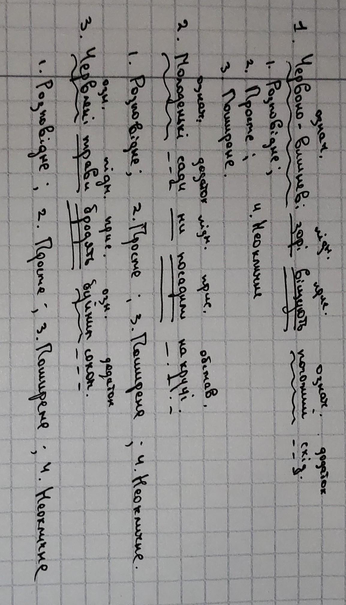 Зробіть повний синтаксичний розбір речень. 1. Червоно-вишневі зорі віщують погожий схід. 2. Молоденькі сади ми посадили на кручі. 3. Червлені трави бродять буйним соком (Із тв. А. Малишка).