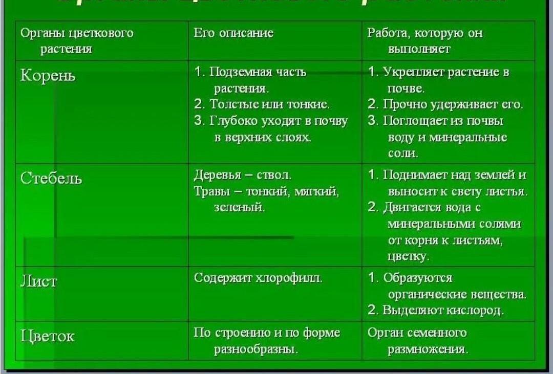 Корінь утримує рослину у ґрунті, всмоктує з ґрунту воду з поживними речовинами Стебло Листок використовує сонячну енергію для утворення поживних речовин з води та вуглекислого газу, виділяє кисень у повітря Квітка утворює плід з насінням Плід з нього виростає нова рослина переганяє воду від кореня до інших органів рослини