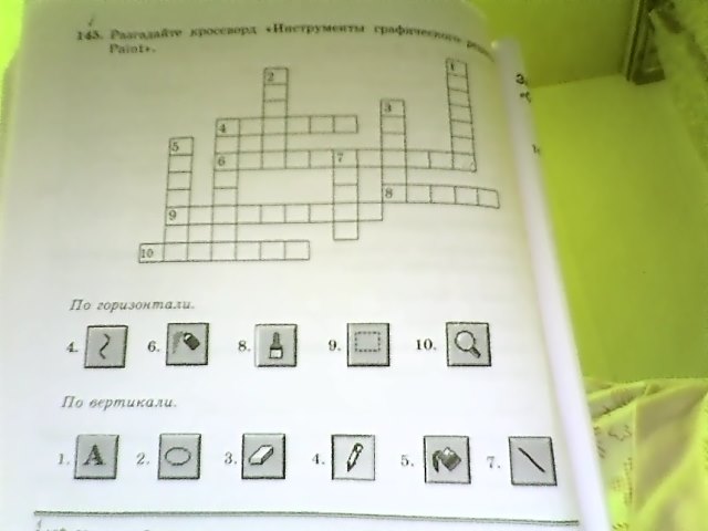 1.надпись; 2.эллипс; 3.ластик; 4.по горизонтали:кривая, по вертикали:карандаш;