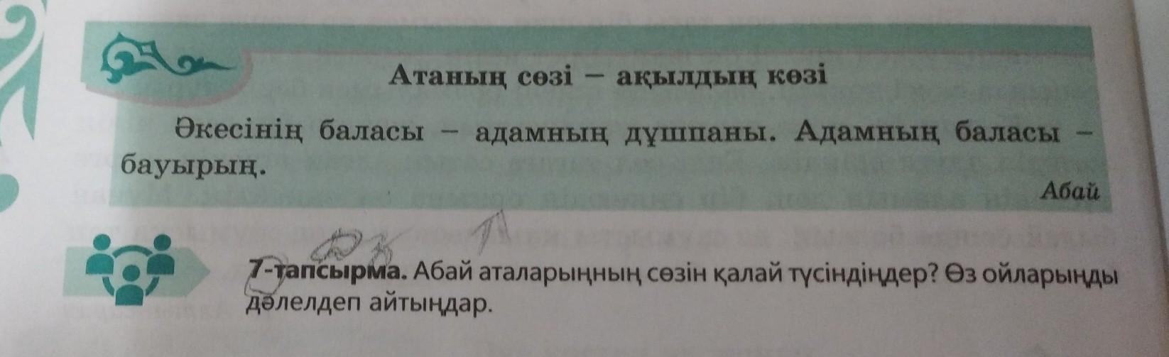 7-тапсырма. Абай аталарыңның сөзін қалай түсiндiңдер? Өз ойларыңды дәлелдеп айтыңдар. срочно!!!!