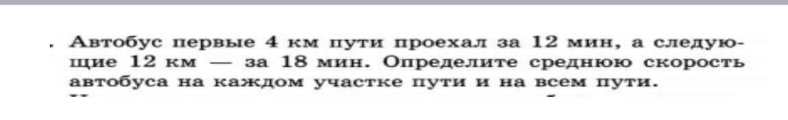 Vср. = S / t = ( S1 + S2 ) / ( t1 + t2 ) = ( 4 + 12 ) / ( 0,2 + 0,3 ) = 16 / 0,5 = 32 км/ч.