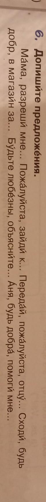 Мама разреши мне погулять. Пожалуйста зайди к учителю. Передай пожалуйста отцу записку. Сходи будь добр, в магазин за продуктами. Будьте любезны, объясните тему. Аня, будь добра, помоги мне пожалуйста.