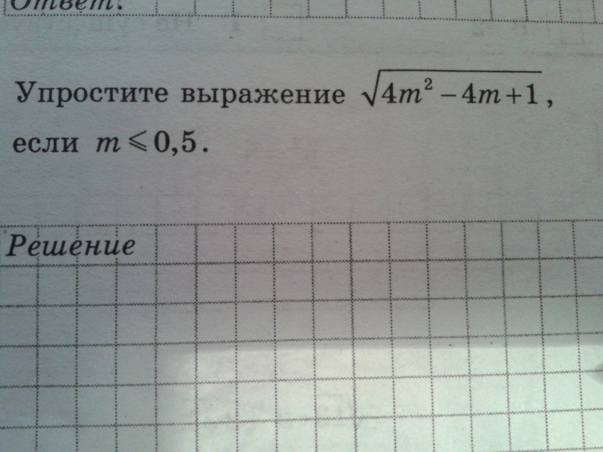 так как m≤0,5 то 2m-1≤0 тогда корень раскроется так