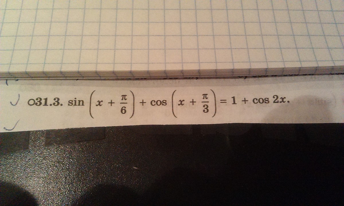 решение : cosx +cosx=1+cos2x. cosx(1-cosx)+(cosx-1). cosx =0 cosx= 1 cosx=п/2+пк cosx= 2пк