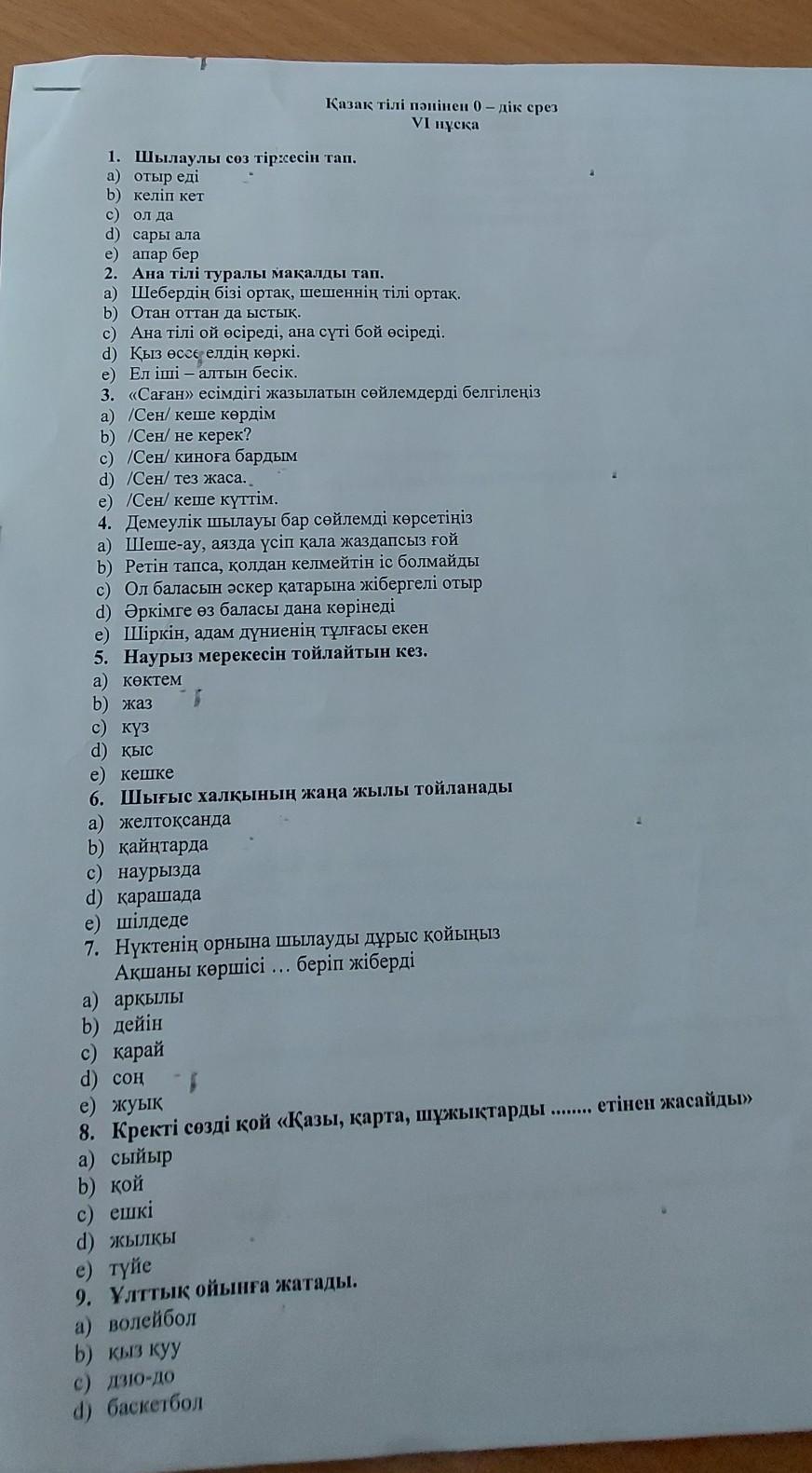 Қазақ тілі пәнінен 0 - дiк срез