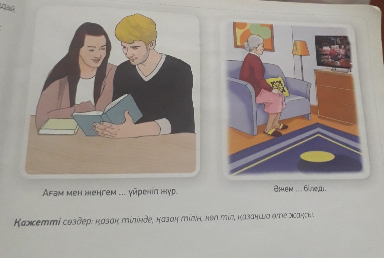 АЙТЫЛЫМ 14 -тапсырма. Суреттерге карап, кiмнiк кай тiлде сөйлей алатыны туралы айтып бер. Атам мен әжем ... сөйлеседі. Нағашым... сөйлейді.