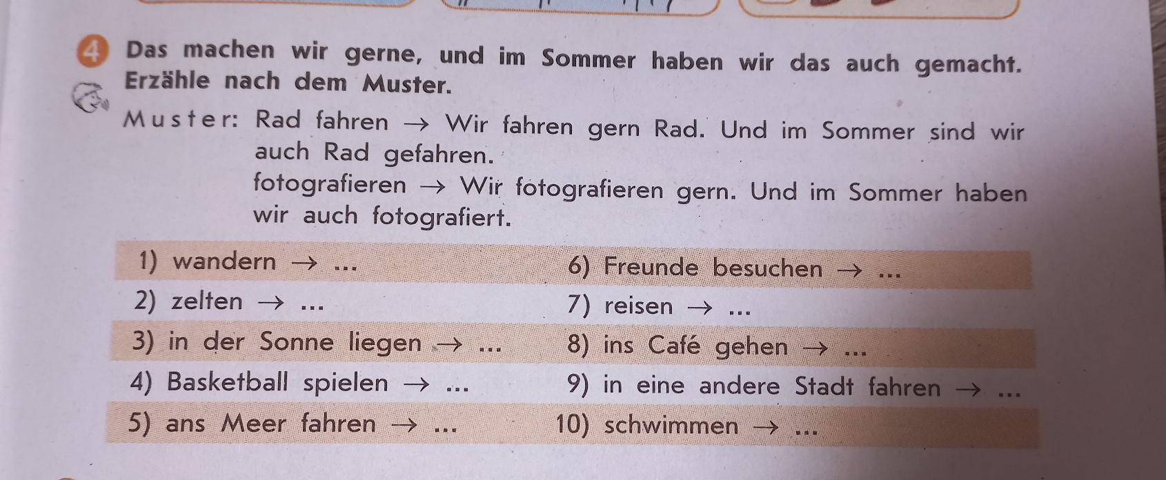4) Wir spielen Basketball gern. Und im Sommer haben wir auch Basketball gespielt.