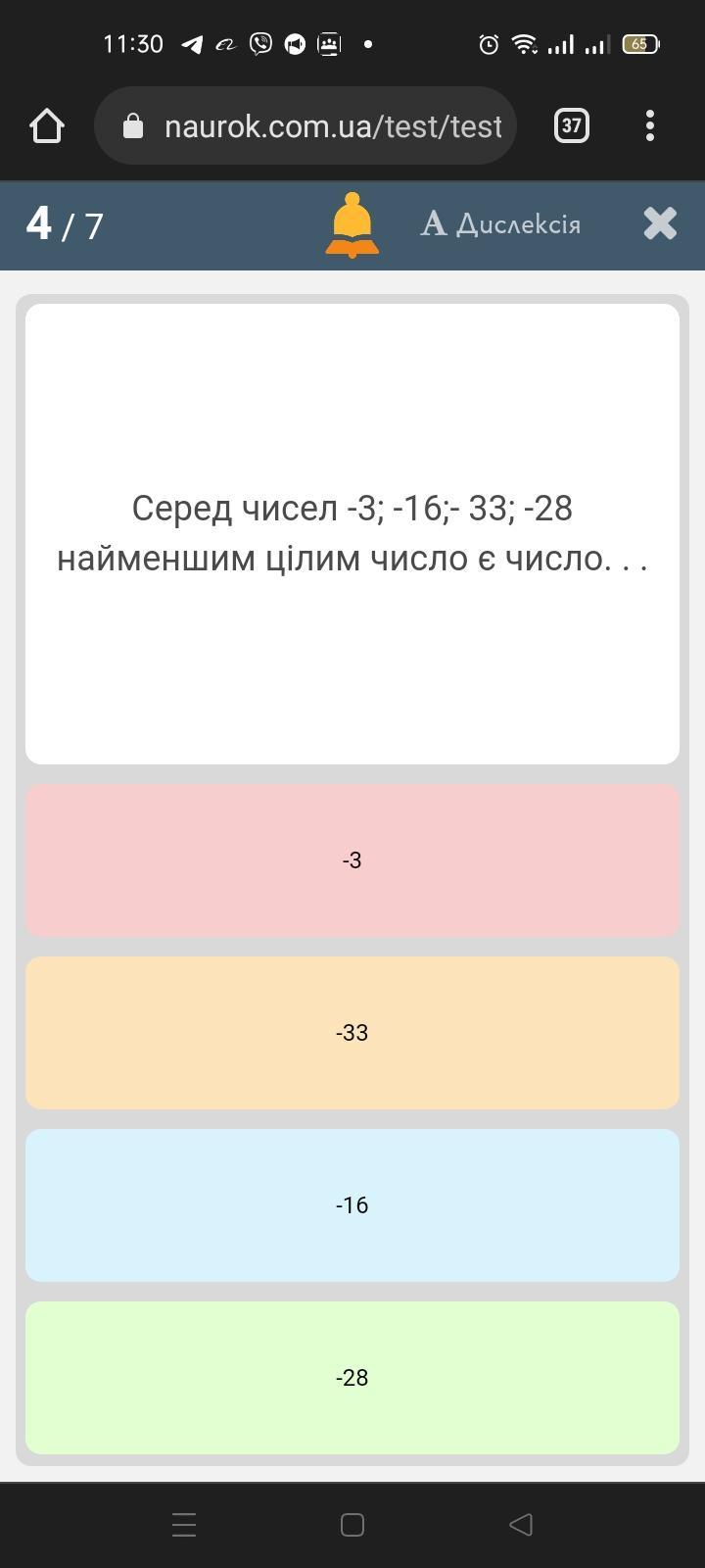 я не очень понимаю украинский, но если нужно выбрать наименьшее число, то это -33, если наименьшей модуль, то -3