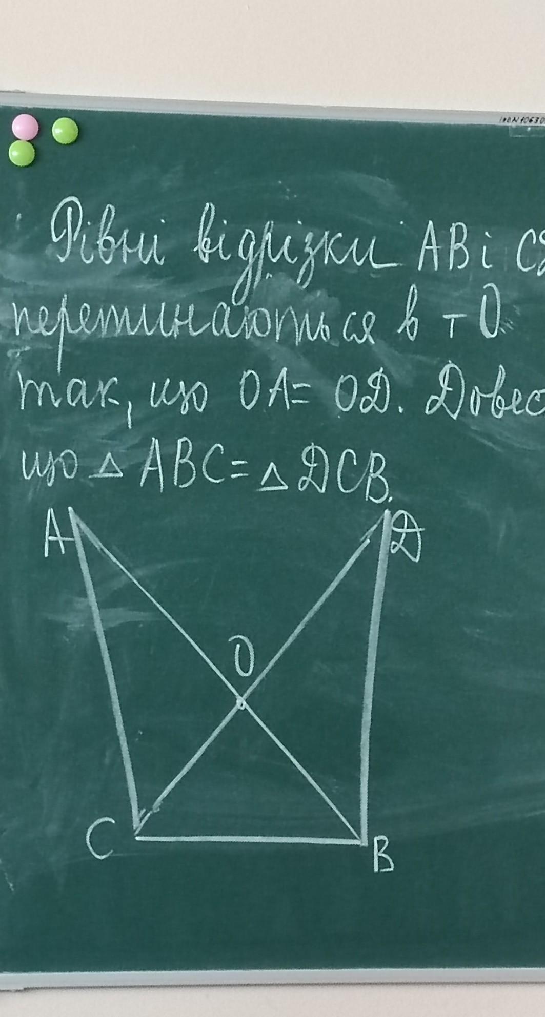∆АОС=∆DOB по2 сторонам и углу между ними, значит соответствующие элементы равны, следовательно,