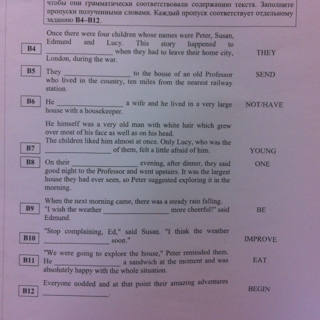 Когда-то были четверо детей, чьи имена были Питер, Сьюзен, Эдмунд и Люси. Это случилось, когда они были вынуждены покинуть свои дома город Лондон, во время войны. в доме старого профессора, который жил н страну, в десяти милях от ближайшей железнодорожной станции жена и он жил в очень большом доме с экономкой. Он сам был очень старый человек с седыми волосами, который вырос на большей части его лица, а также на голове Дети любили его почти сразу, только Люси, который был из них, чувствовал себя немного боялась его. На их вечером после ужина, они попрощались с профессором и пошел наверх. Это был самый большой дом, который они когда-либо видели, так что Петр предложил explonng его утром. Когда на следующее утро пришел, был непрекращающийся дождь падение. веселее! "сказал:" Мне жаль, что погода Эдмунд "Хватит жаловаться. Эд говорит Сьюзан." Я думаю, погоду в ближайшее время "." Мы собирались исследовать дом. Петр напомнил им. бутерброд на данный момент и был абсолютно доволен всей ситуации у всех кивнул и в этот момент их удивительные приключения