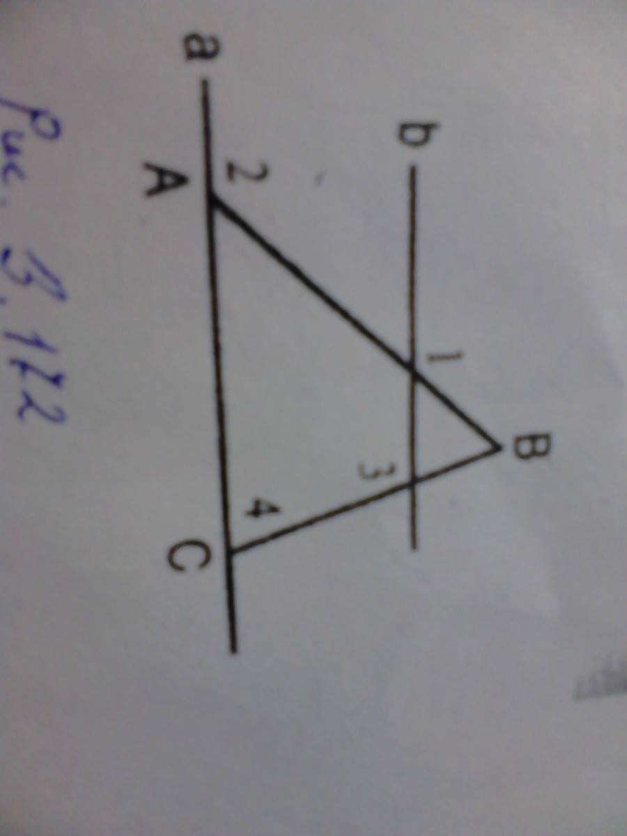 ∠3 и ∠4 - односторонние при пересечении параллельных прямых а и b секущей ВС, значит из сумма равна 180°. Тогда