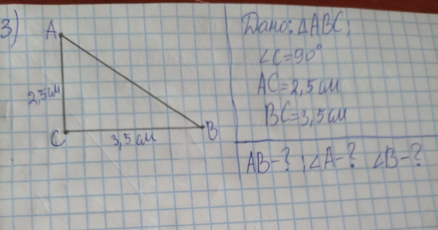 АВ=√АС²+ВС²=√2,5²см²+3,5²см²=√18,5см²=(√74)/2см