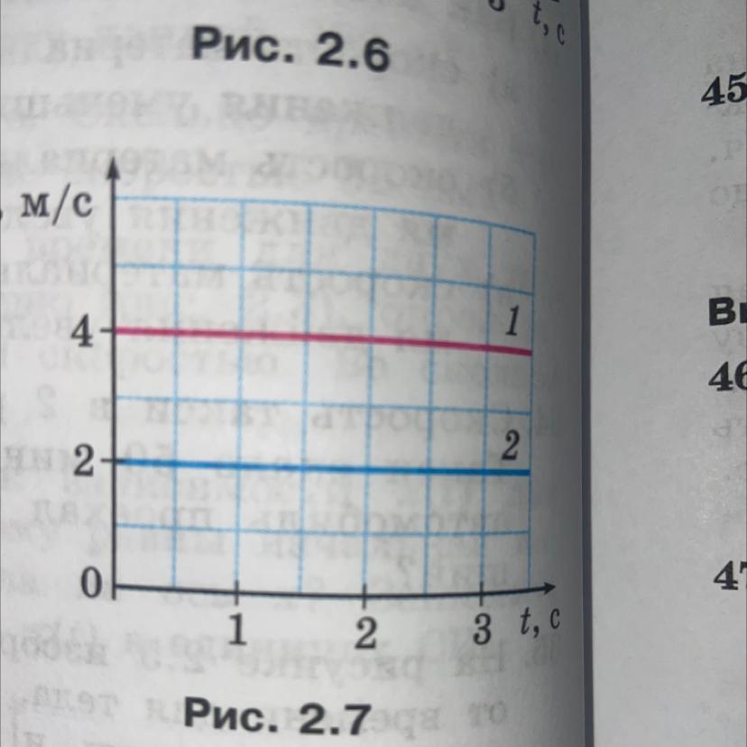 на рисунке 2.7 изображены графики зависимости проекции скорости на ось х от времени для двух велосипедистов движущийхся вдоль оси х. постройте графики зависимости пути от времени для этих велосипедистов