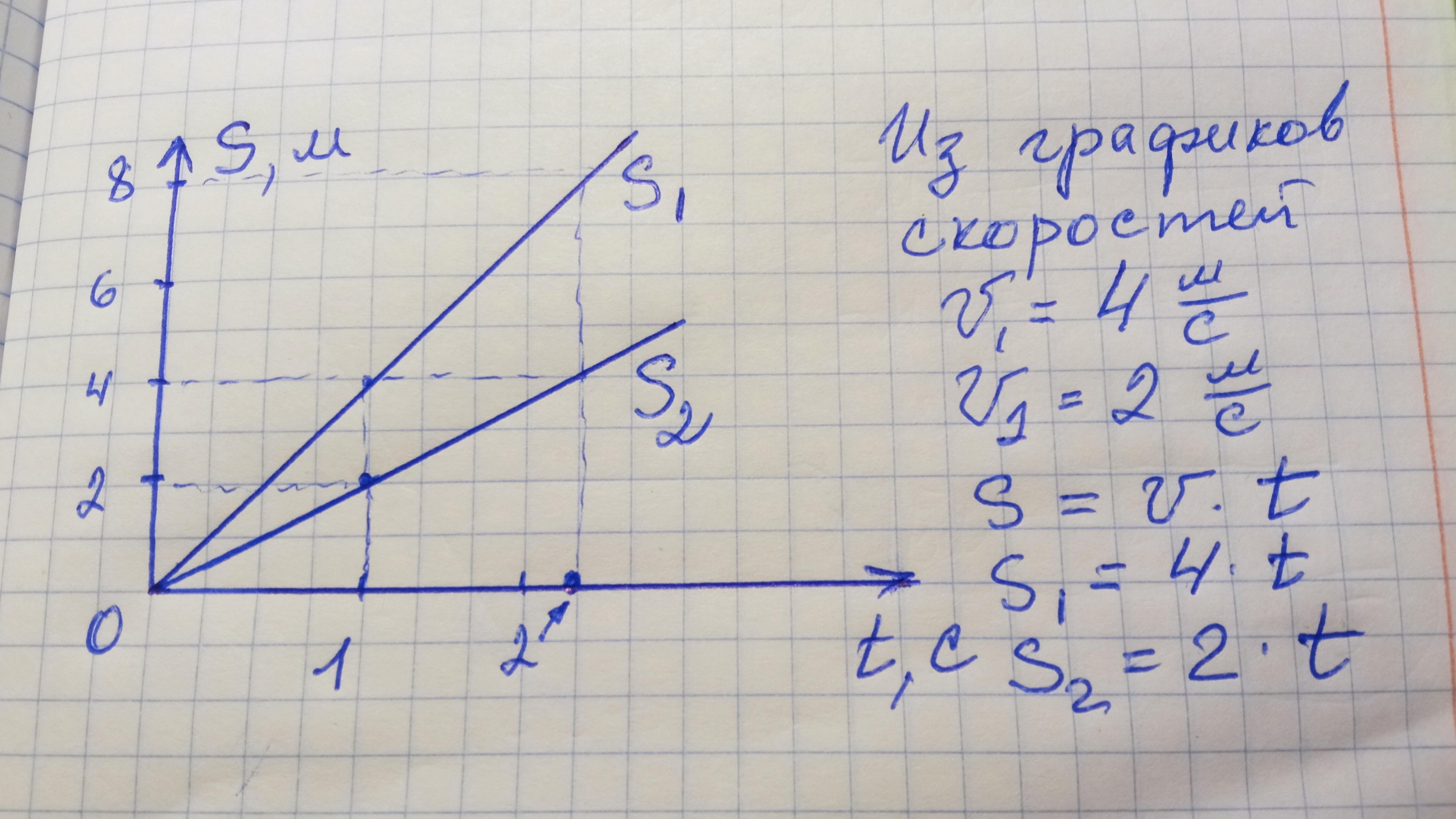 Хотя там не координаты, а пути. Не обратила внимания. Тогда стройте S1=2t; S2=4t. Выходят из начала координат. По точкам. S2 круче будет))