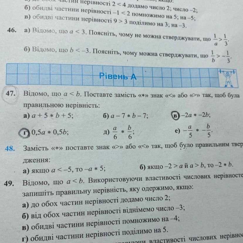 в ) - 2a > - 2b ; г ) 0,5а < 0,5b .