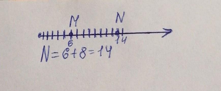 На числовом луче обозачьте точку M(6) и точку N, расположенную на 8 единиц правее от нее. Чему равна координата точки N на числовом луче?