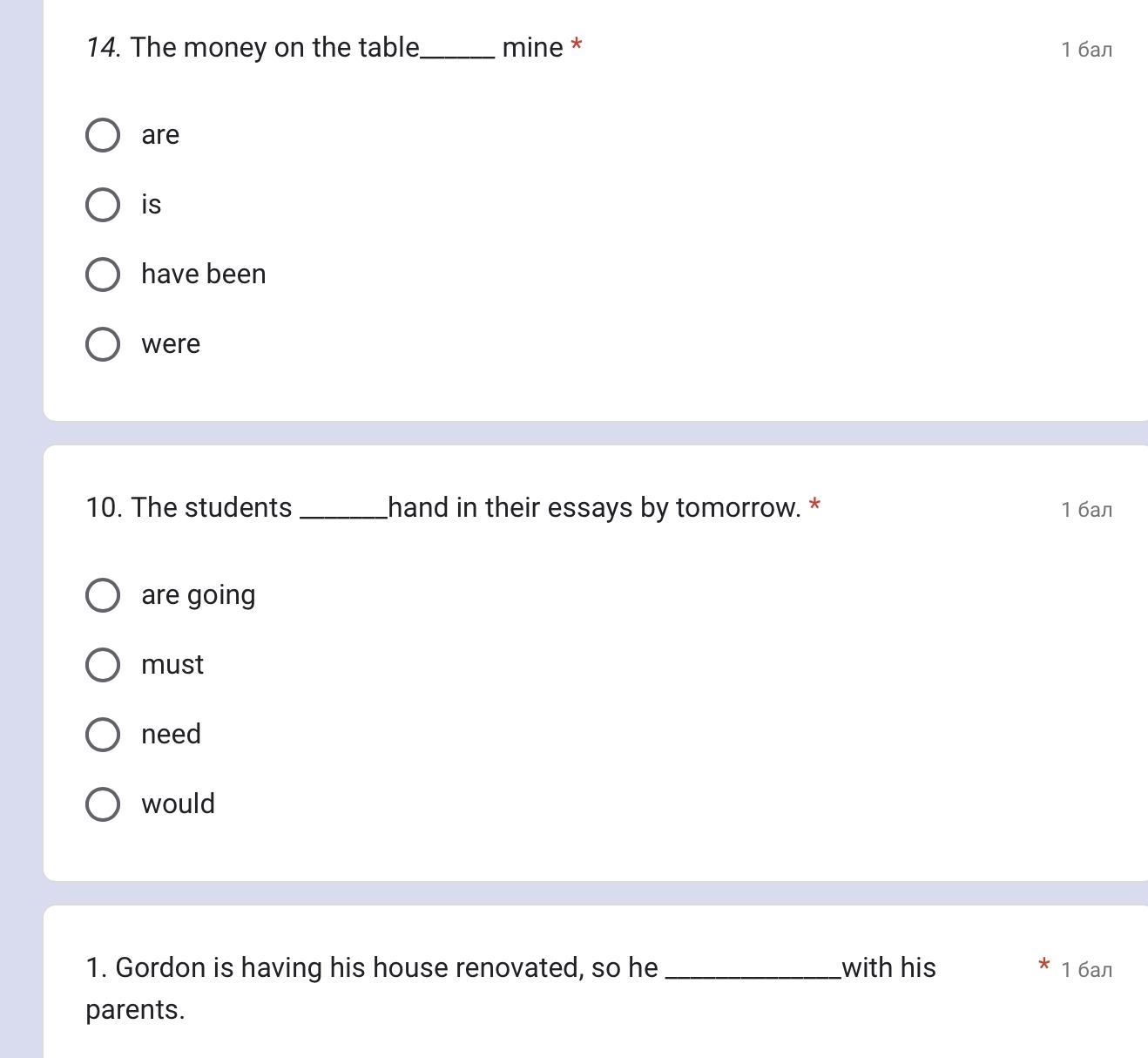 14. is - слово money - единствен.число в англ.яз. The money on the table is mine.