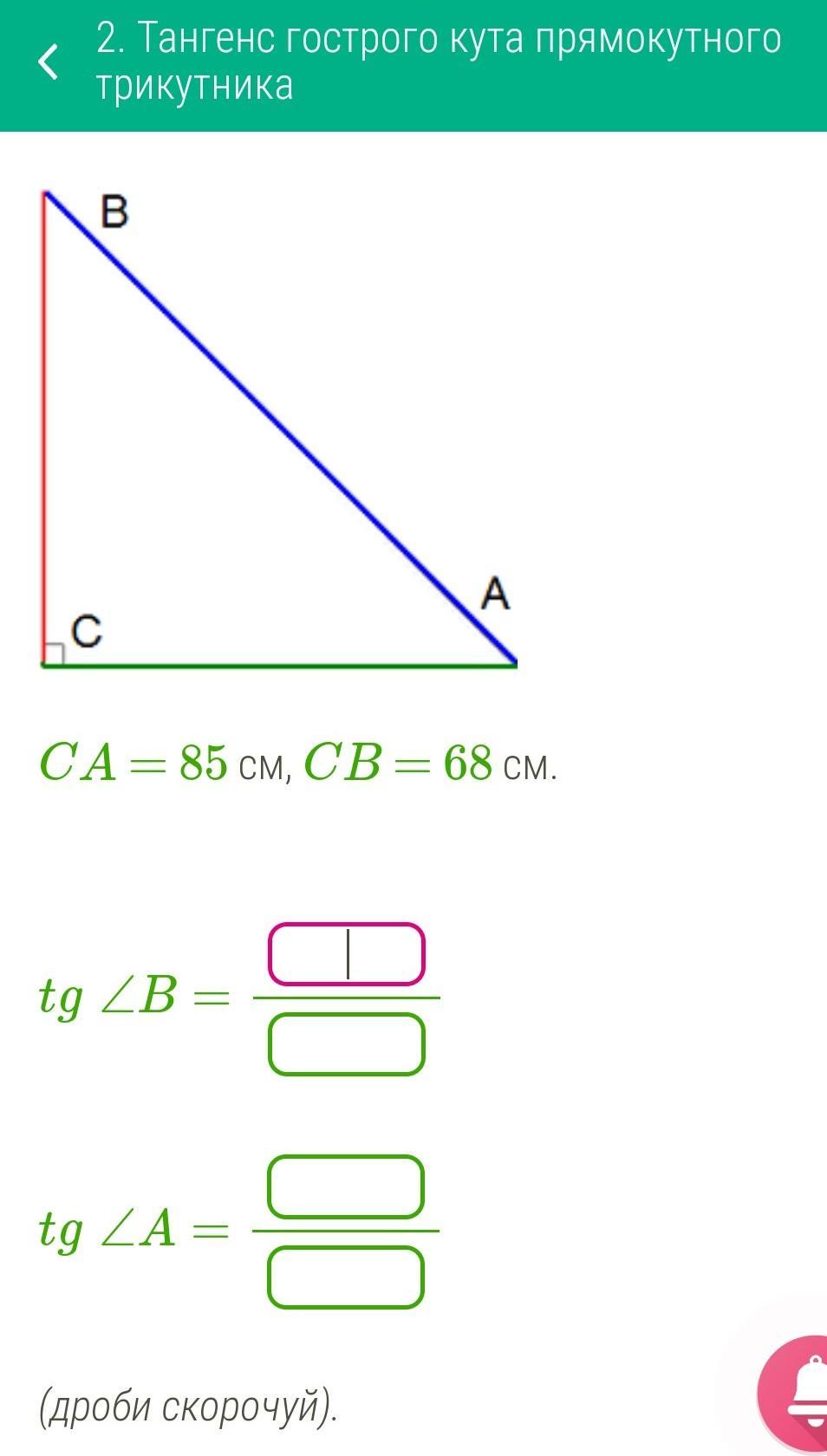 tg угла А=68/85