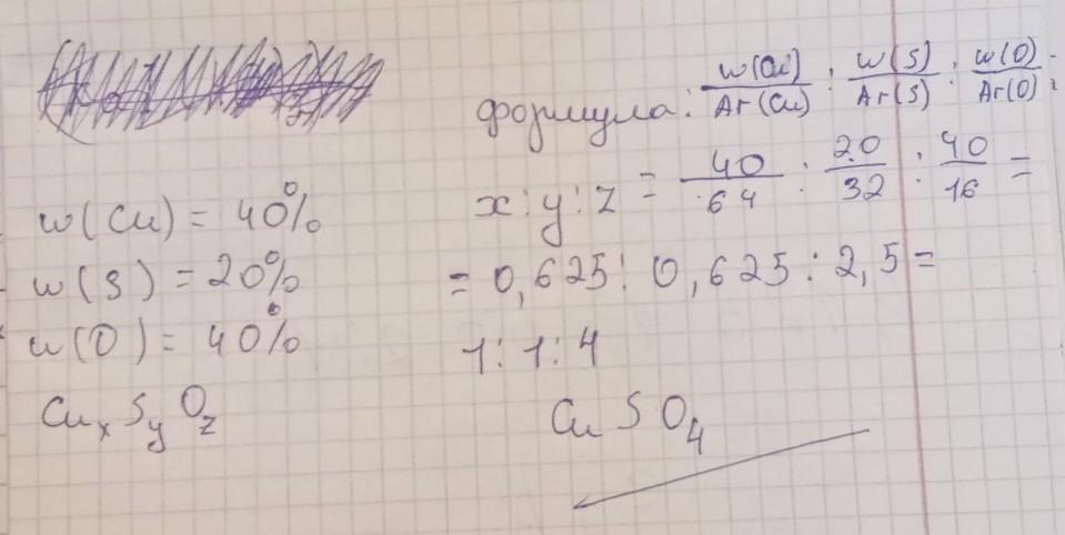 До складу речовнинни входить Cu (40%) S(20%)O(40%) виведіть форму сполуки ВСЕ БАЛИ ОДАЮ ПОМОГИТЕ