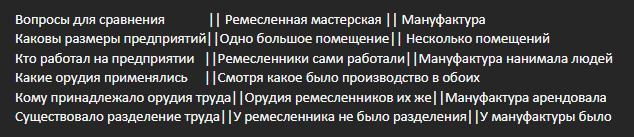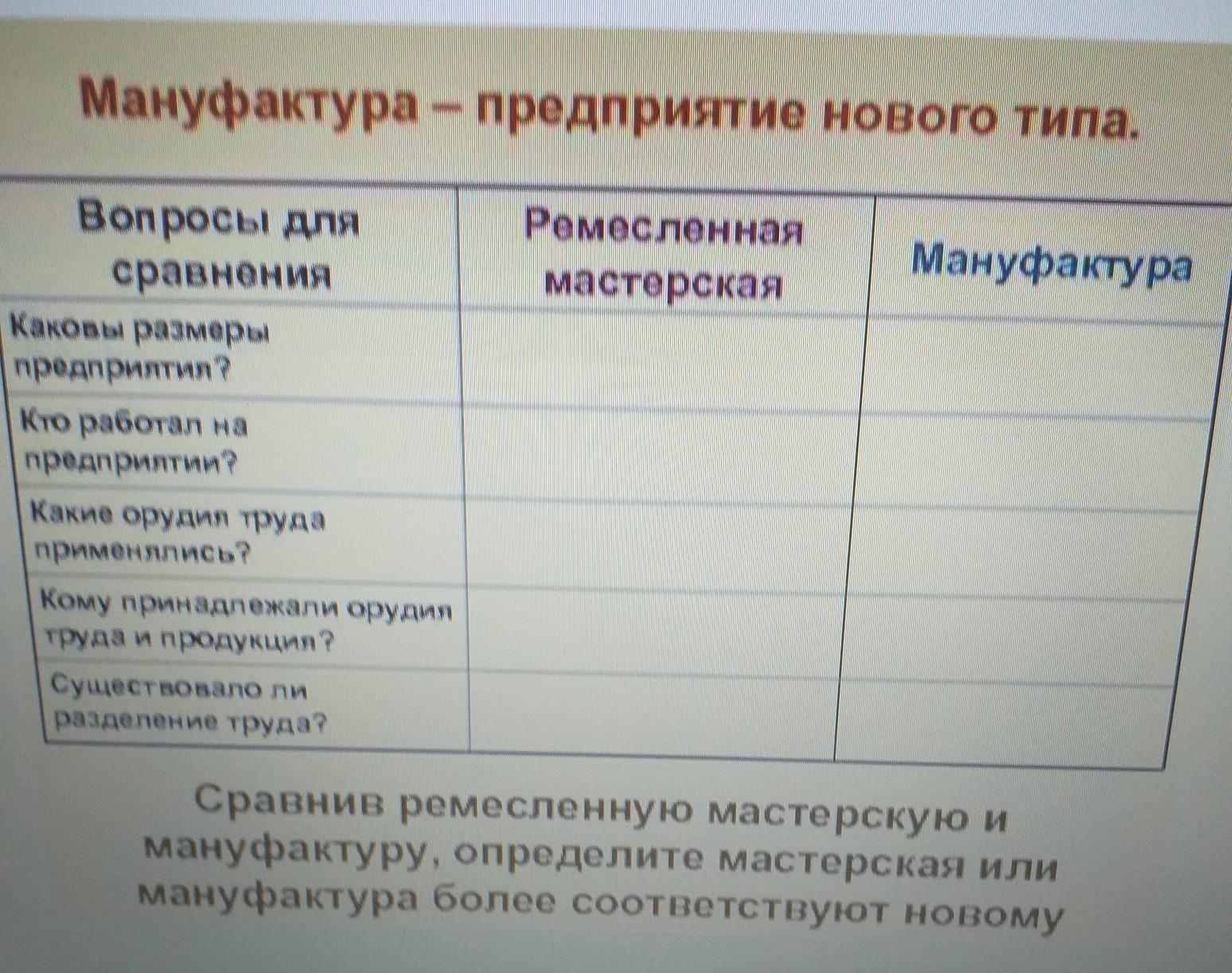 Вопросы для сравнения || Ремесленная мастерская || Мануфактура