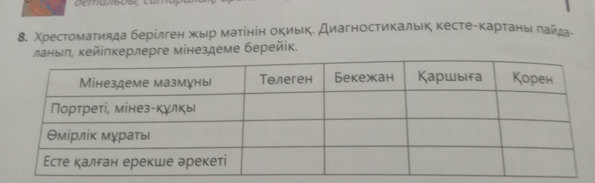 Төлеген портреттегы мынез кулкы: Төлеген озыне жар ыздеп жүрген серы.