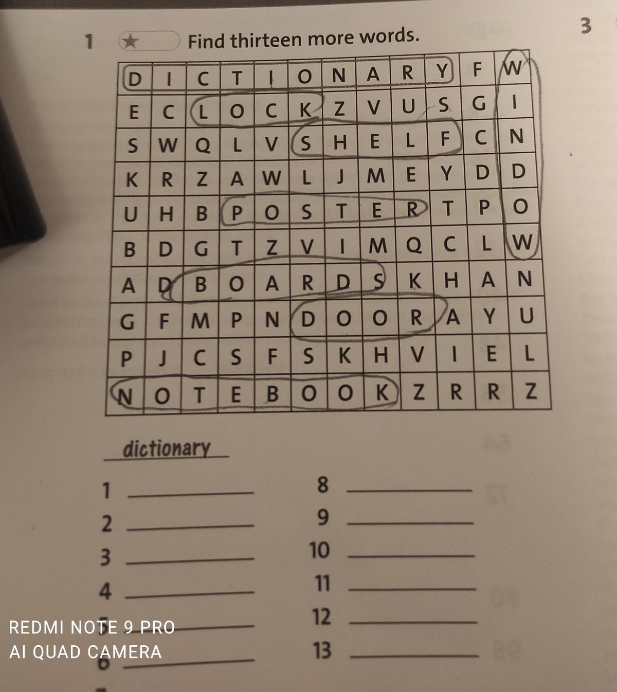 1 2 3 4 5 6 7 D E Find thirteen more words. C T IONA CLOCKZVUS 1 SWQ K R ZAW L U B H P DG B A G P NO VOCABULARY A classroom F J LVS PBOA dictionary OS TZ MPN C S F T E B VRDSO P MQC L W RDS ΚΤΗΤΑ Ν Y U IE L R RZ 8 9 10 H ELF CN JM E Y D TE RT 11 12 13 I DOO RA V R YFWW G 1 KH K O POW N D