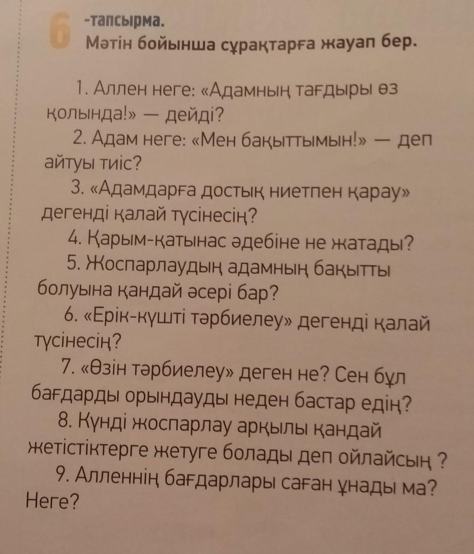 7.Өзін тәрбиелеу жаман істерді доғару деп түсінемін. Ал мен өзімді тәрбиедеуді жоспарлардан бастар едім.