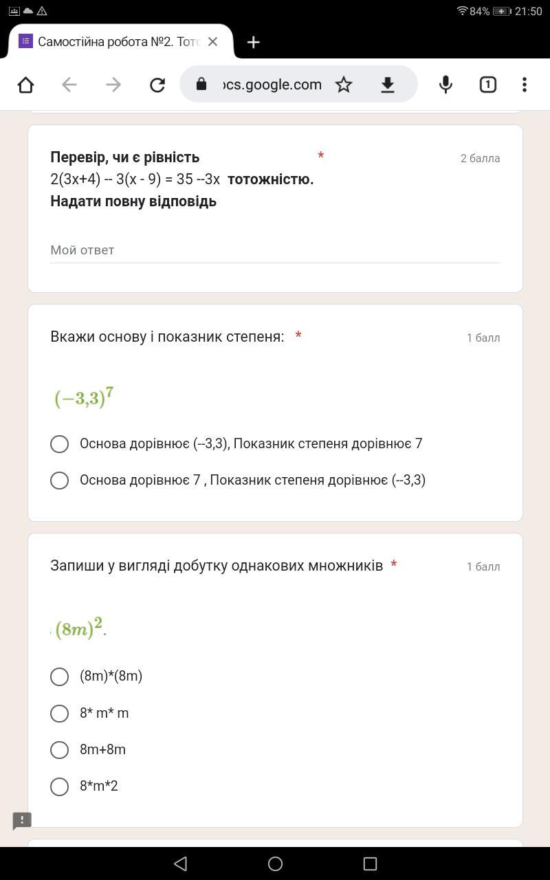 1) Тождество - это равенство, выполняющееся на всём множестве значений входящих в него переменных.