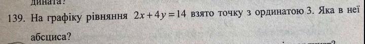 Так как точка с ординатой (координата y) 3 лежит на графике, то она удовлетворяет уравнению 2х + 4y = 14.