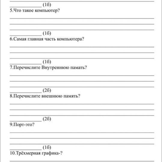 5) Компьютер - это электронно-вычислительная машина. (или если надо подробно) Компью́тер — устройство или система, способная автоматически выполнять заданную, изменяемую последовательность операций