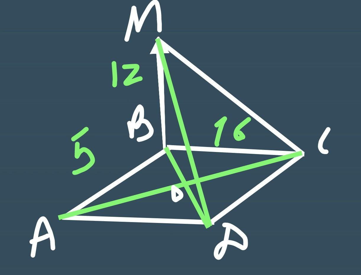 MD=√BM²+BD²=√144см²+281см²=√425см²=5√17см