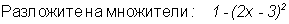 1-(2x-3)^2=1^2-(2x-3)^2=по формуле разности квадратов=(1+(2x-3)) (1-(2x-3))=(1+2x-3)(1-2x+3)=(2x-2)(4-2x)=2(x-1)*2(2-x)=