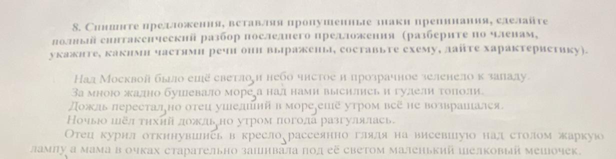 8. Спишите предложения, вставляя пропущенные знаки препинания, сделайте