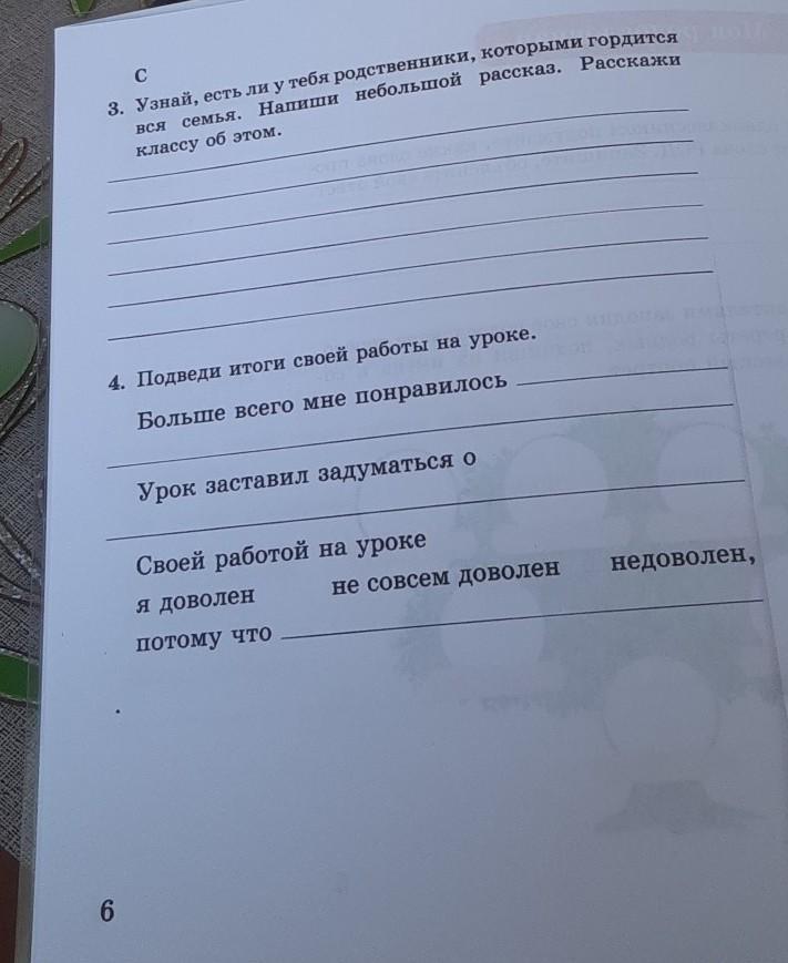 Это индивидуальное задание. Ты должен сам написать про свою семью и то что было у ТЕБЯ на уроке.