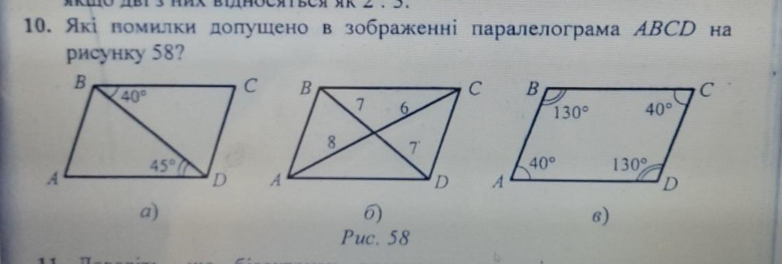 СРОЧНО, ДАЮ 45 БАЛЛОВ! ЗАДАНИЕ С ФОТО! Треба описати які саме помилки допущено в цих паралелограмах