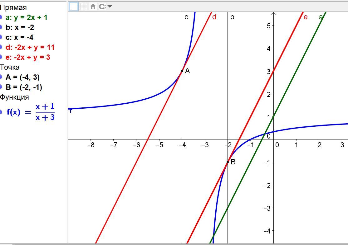 Отсюда получаем уравнения касательных к заданной функции в найденных точках касания.
