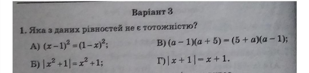 Потрібно написати який з ціх всір рівностей НЕ є тотожністю (розписати)