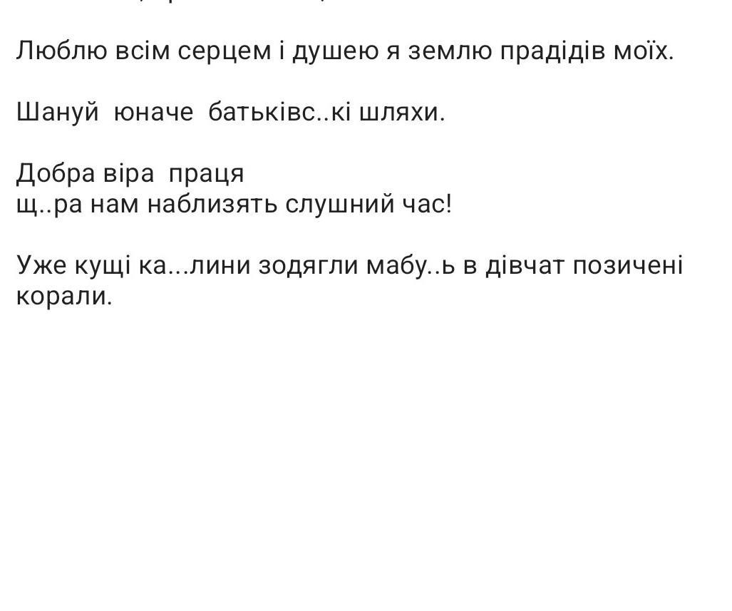 Ответ: батьківські шляхи, щира,калини, мабуть